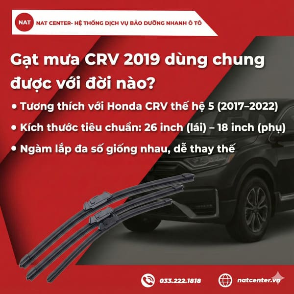 Gạt mưa CRV 2019 dùng chung được với những đời nào? – NAT Center tư vấn