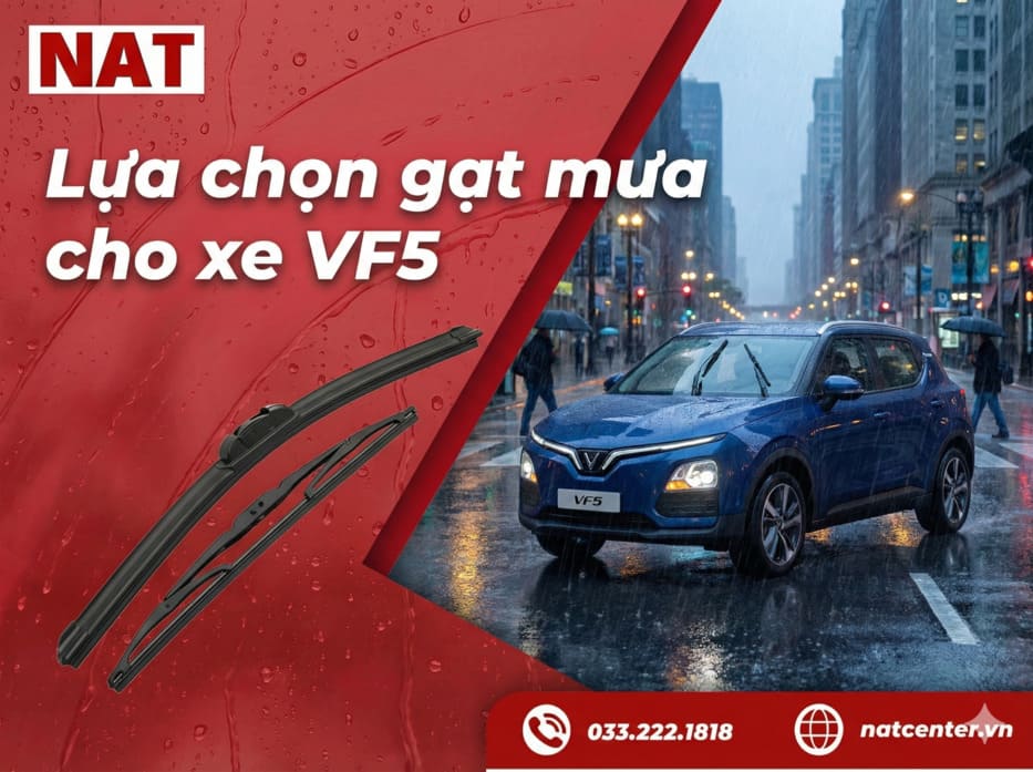 Mùa mưa đến, nhiều chủ xe VF5 gặp tình trạng gạt kêu to hoặc để lại vệt nước trên kính. Thậm chí, có trường hợp gạt không sạch khiến tầm nhìn khi lái xe bị giảm rõ rệt. Nguyên nhân chủ yếu không nằm ở chất lượng xe, mà do chọn sai loại gạt mưa không phù hợp kính cong đặc trưng. Đây là lỗi rất phổ biến nhưng hoàn toàn có thể tránh. Trong bài viết này, NAT Center sẽ giúp bạn chọn đúng loại gạt mưa VF5 để gạt êm, sạch và bền lâu.